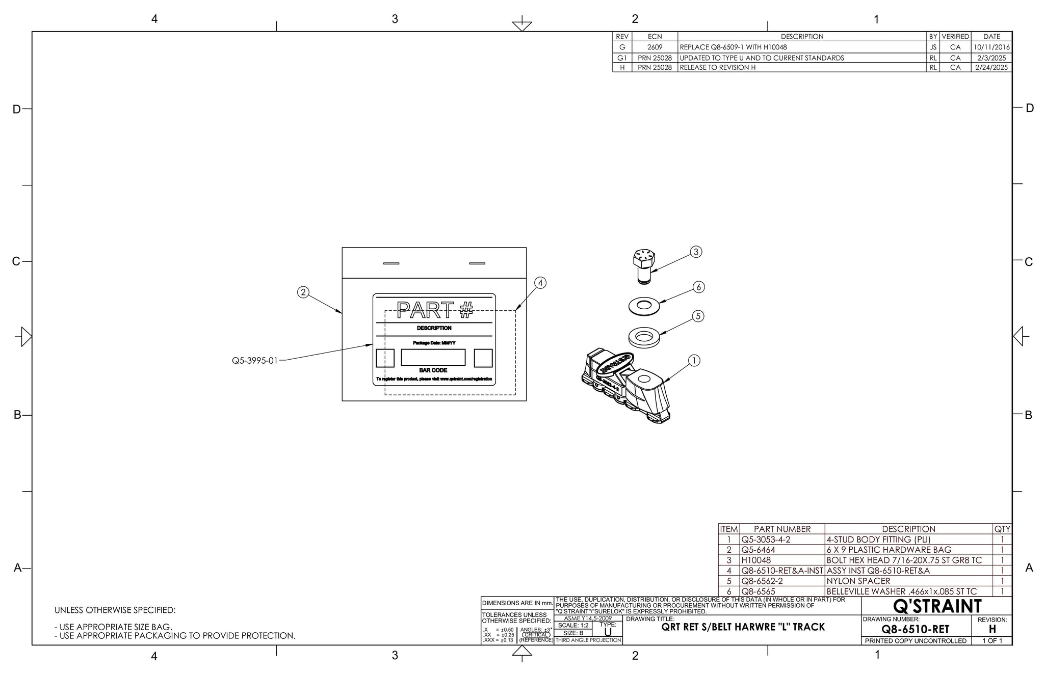L-Track Mounting Hardware for Top of Retractable Shoulder Belt | Q8-6510-RET