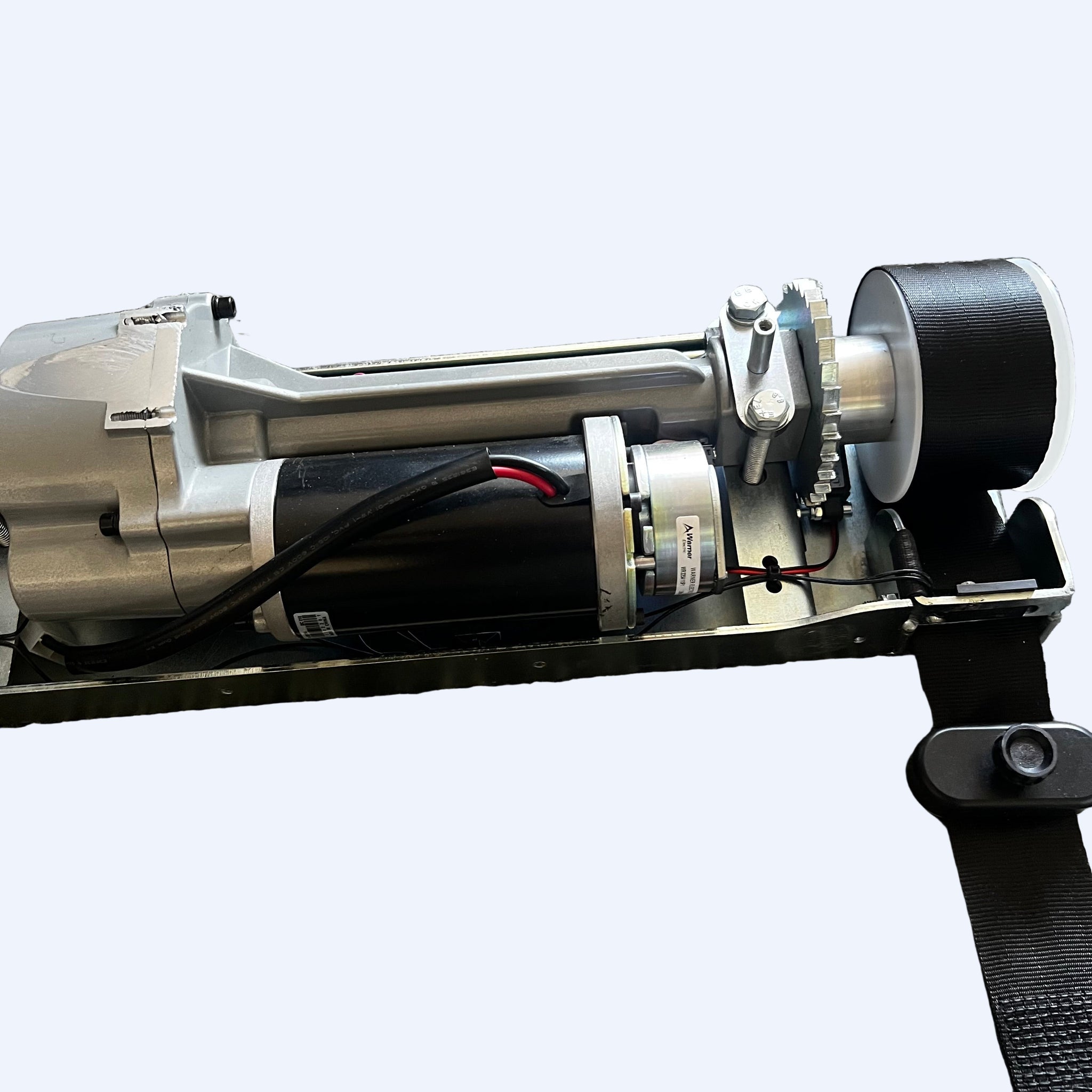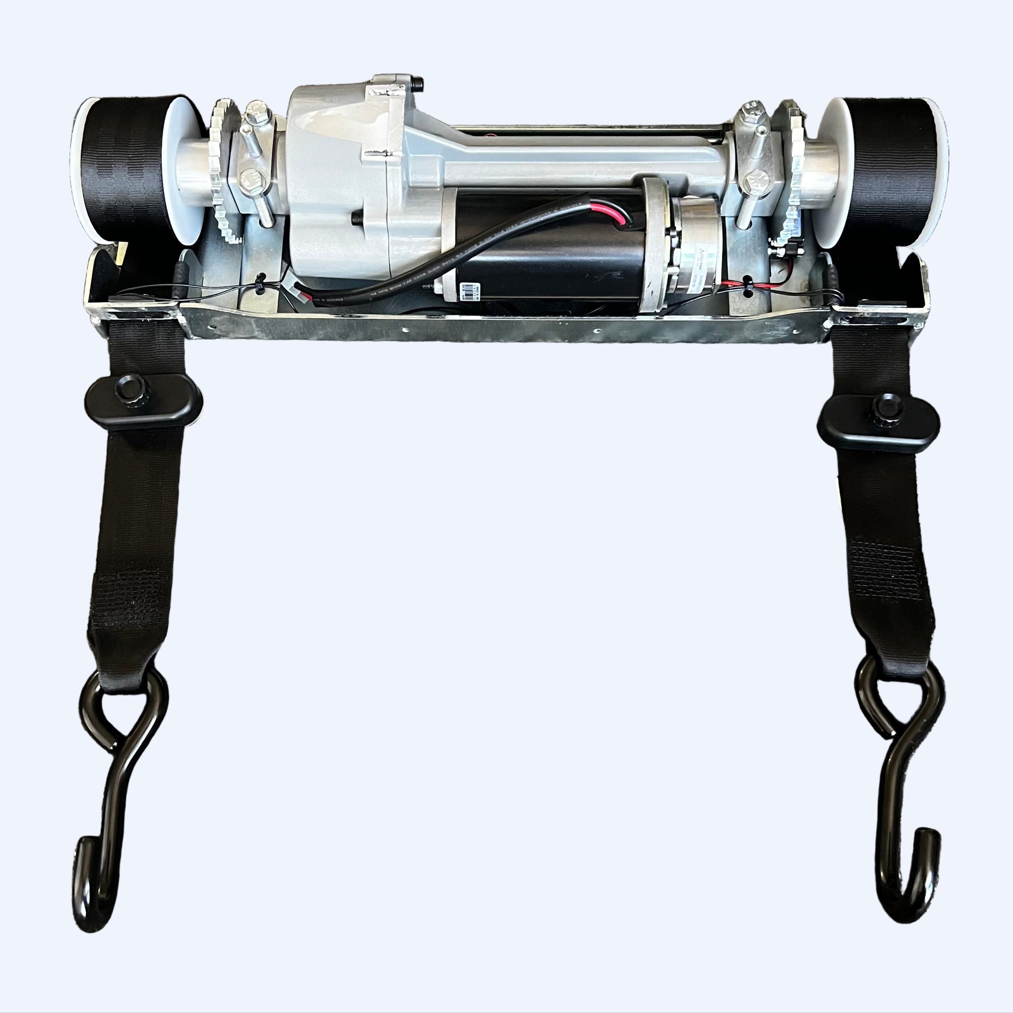 The world’s most innovative rear entry winch and securement system – pulls a wheelchair and passenger into a vehicle up a ramp. Attached to the front of the wheelchair, it effortlessly draws a wheelchair inside. Once in place, Easy Pull’s restraint system secures the wheelchair to the vehicle. Rear securements still required in the back.