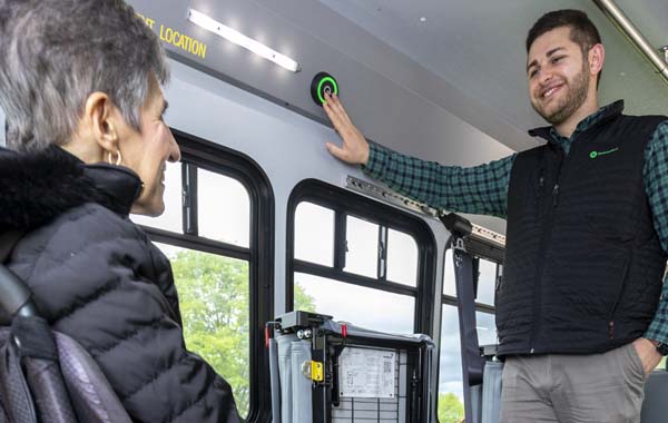 CLEAR & SIMPLE - The platform provides a clearly visible seating area in the vehicle, empowering passengers and helping the operator guide the wheelchair into place. The pre-positioned occupant securement minimizes the awkwardness of routing belts and maximizes the passenger’s personal space